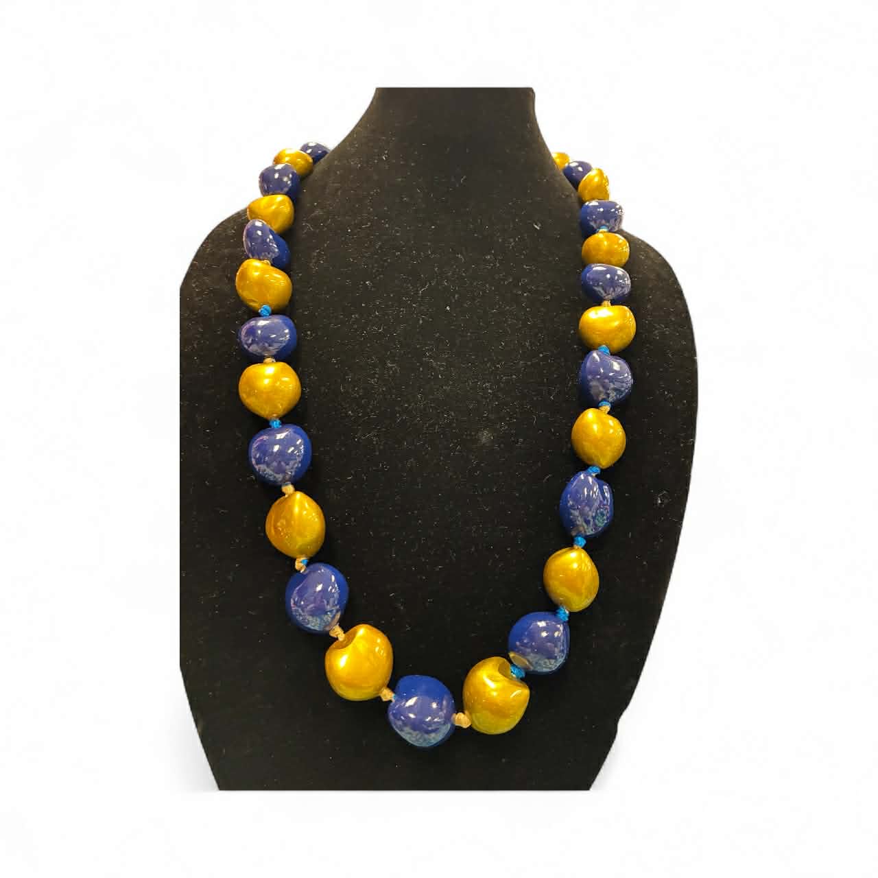 Authentic Kukui Nut Necklace 32” – Hawaiian Lei Jewelry | Blue & Yellow