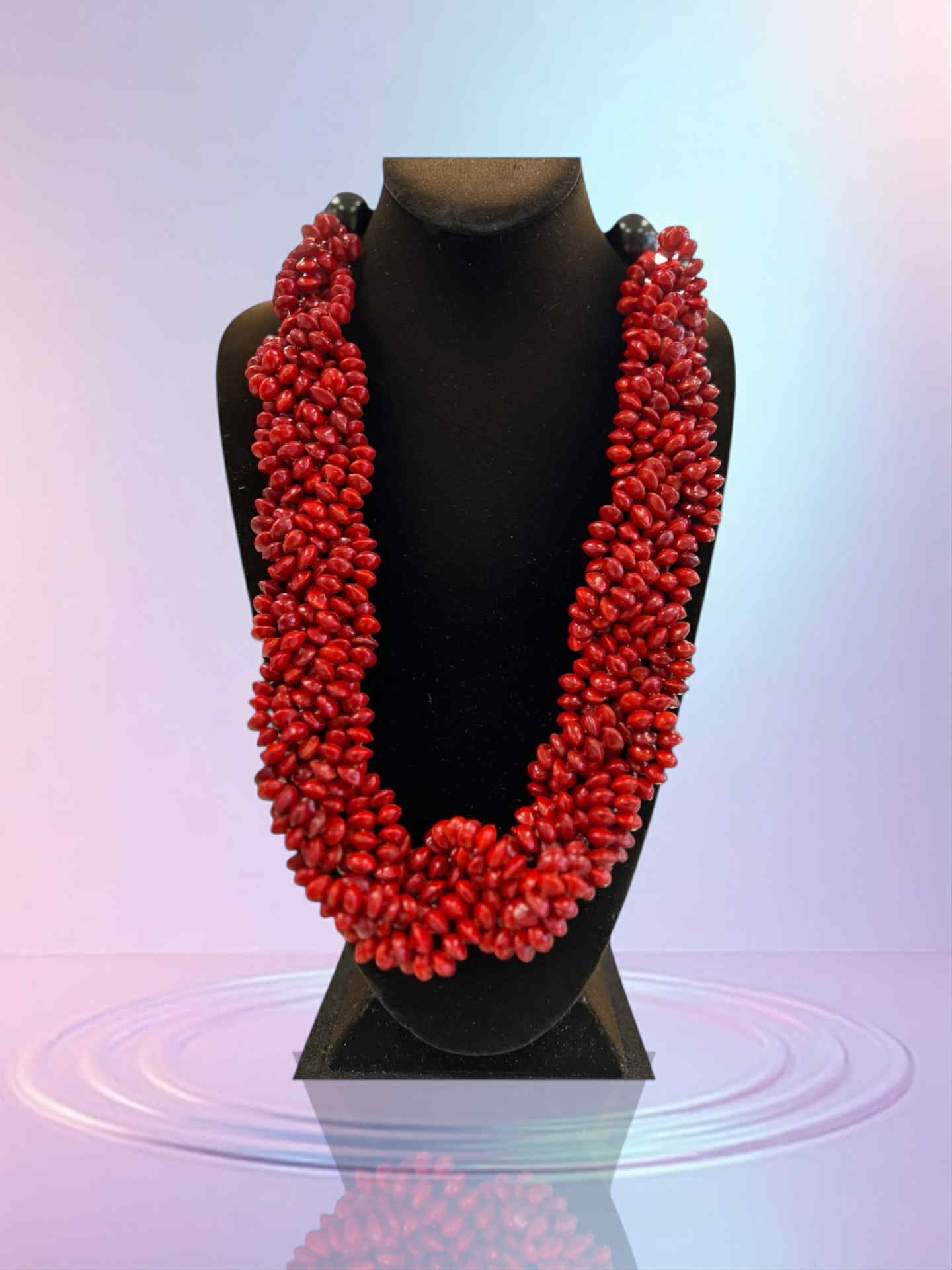 A traditional, handmade Samoan accessory featuring vibrant red lopa seeds which are considered a symbol of good luck and strength in Samoan culture. These versatile necklaces are worn for special occasions and events, embodying the beauty and cultural pride of the islands.
